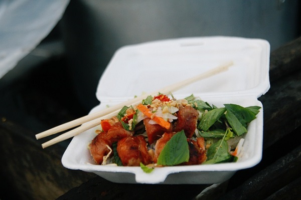 Không có chả giò hay những miếng bò lá lốt nướng thường thấy, hộp bún thịt nướng trên sông nước Cái Răng mộc mạc bao gồm bún tươi, vài miếng thịt và rau sống. Thịt heo được xắt thành miếng nhỏ, ướp các loại gia vị cho vừa miệng và nướng sơ trước. Khi bán cho thực khách, người chế biến sẽ nướng lại cho nóng rồi bỏ vào hộp. Miếng thịt mềm, dậy mùi thơm nức.