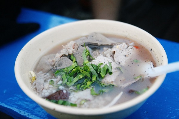 Một món ăn sáng khác bạn nên thử qua đó là cháo lòng. Tô cháo trên thuyền không đặc sắc như các hàng quán trên bờ. Chỉ là mấy miếng thịt và gan, huyết, thêm vài cọng giá và chút hành lá xắt nhuyễn nhưng ai ăn rồi cũng tấm tắc khen ngon.
