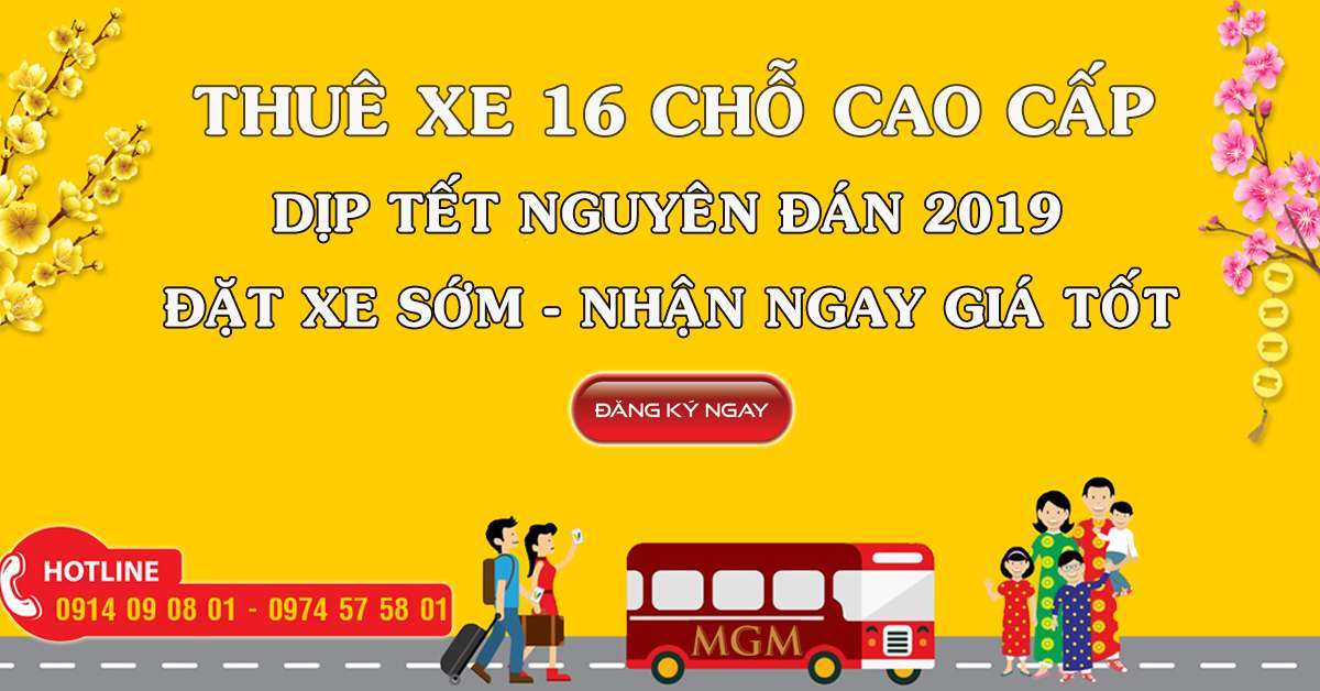 Nhằm tạo điều kiện tốt nhất để Quý khách yên tâm làm việc, không phải bận tâm lo lắng về phương tiện về Quảng Ngãi trong những ngày giáp tết, MGM xin gửi đến các bạn chương trình đặc biệt: Cho thuê xe 16 chỗ dịp Tết 2019 giá rẻ chất lượng cao tuyến Sài Gòn – Quảng Ngãi nhằm tạo cho Quý khách điều kiện thuận lợi để về quê đón tết cùng gia đình, mà không phải lo ngại về vấn đề đặt vé xe về Quảng Ngãi trong dịp Tết năm nay nữa!