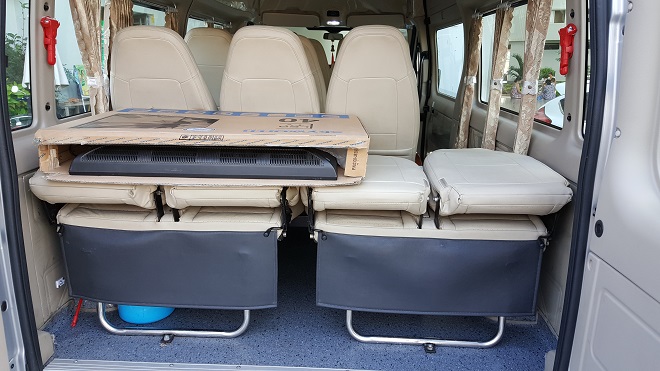 Ford Transit thiết kế theo tiêu chuẩn Mỹ vì thế không gianbên trong xe rộng rãi cho một người to con.