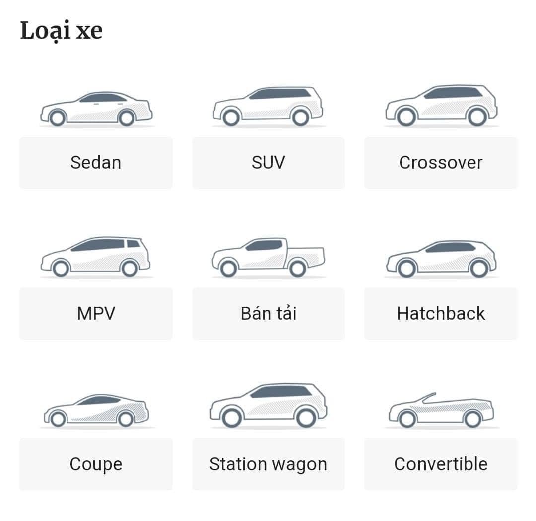 4/ MPV (Multi-Purpse Vehicle) hay minivan, là xe đa dụng thường sử dụng cho gia đình, có khả năng linh động chuyển đổi giữa chở người và chở hàng hóa. MPV thường có gầm cao hơn sedan nhưng thấp hơn crossover hay SUV.