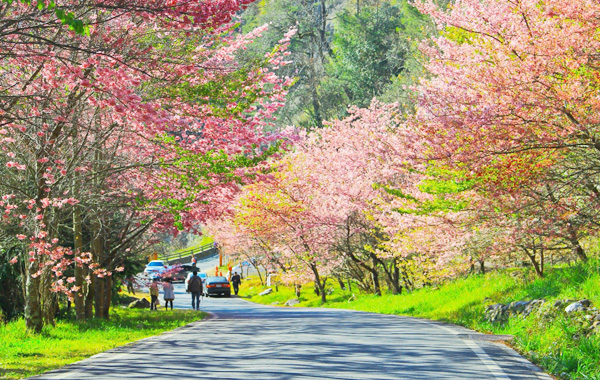 Từ giữa tháng 2 đến giữa tháng 3, đảo quốc xinh đẹp này lại rộ lên sắc hồng quyến rũ khắp các con đường, sườn núi. Từ Cao Hùng, Đài Trung đến Đài Bắc, hoa anh đào trắng, hồng, đỏ đua nhau khoe sắc và tỏa hương thơm ngát. Công viên Dương Minh Sơn với cảnh sắc thơ mộng, nay bỗng khoác lên mình chiếc áo hồng rực rỡ giữa núi rừng Đài Bắc. Đến với Dương Minh Sơn, bạn có thể vừa leo núi vừa hít thở bầu không khí trong lành và ngắm nhìn bức tranh thiên nhiên thơ mộng, hữu tình.