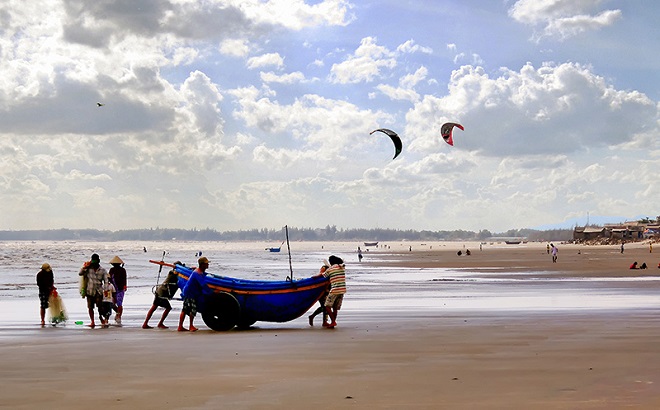 Ra biển vào buổi sớm, du khách sẽ bắt gặp những thuyền thúng đầy cá và cảnh mua bán tấp nập với đa dạng các loại hải sản tươi ngon nhất. Hải sản ở đây rẻ hơn nhiều so với giá cả bán tại các chợ.