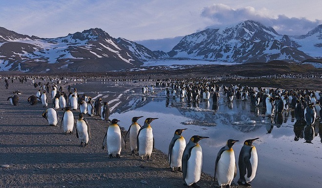 Đảo Nam Georgia, Lãnh thổ thuộc Anh: Tới đây, du khách có thể chiêm ngưỡng cảnh tượng hàng trăm nghìn con chim cánh cụt chen chúc trên bãi biển gập ghềnh, xen lần những con hải cẩu voi nặng tới 2 tần và đàn hải âu bay lượn trên bầu trời. Bạn chỉ có thể tới đây bằng thuyền và phải mất 5 ngày lênh đênh dưới nắng gió biển khơi.