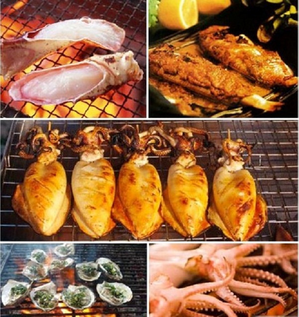 Những con mực tươi rói vớt trong chậu ra thả vào đĩa cồn nướng lên vừa thơm, vừa giòn, chấm với tương ớt cùng muối tiêu chanh thì ngon hết sẩy.